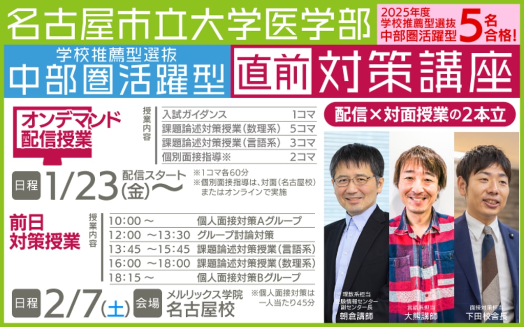 【名古屋校】名古屋市立大学医学部 学校推薦型選抜(中部圏活躍型)直前対策講座2026