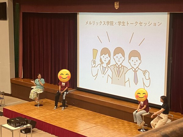 さて今回、メルリックス学院は入試概要と過去問解説に登壇させていただきました。まず、入試概要ではアドミッションセンターの方からのご説明の後に、サプライズコーナーという形で、学生と私とのトークセッションが行われました。