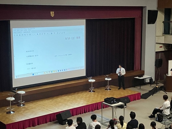 これまでも藤田医科大学や日本大学松戸歯学部などのオープンキャンパスに登壇させていただきましたが、これだけ多くの科目内容を短時間で解説させていただいたのは初めての経験でした。