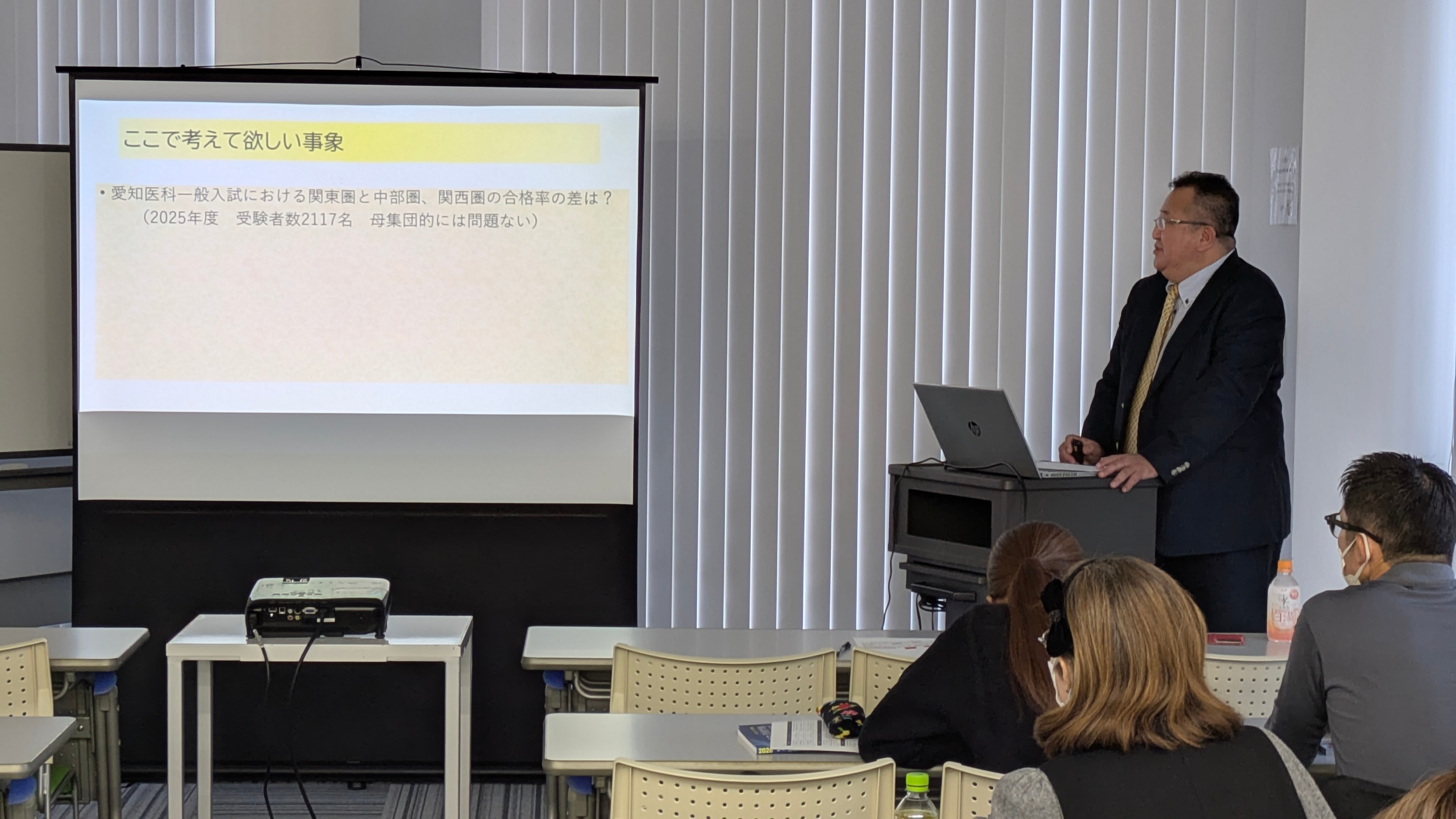 2025年11月30日(日)、メルリックス学院名古屋校は医学部ロードマップセミナーを実施しました。長らく駿台で受験情報分析に携わってきた教育ジャーナリスト・大学入試アナリストの石原賢一先生をお招きし、医学部に合格するためのロードマップについて、特に医専予備校と大手予備校の違いについて解説いただきました。