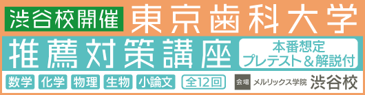 メルリックス学院では非公表である東京歯科大学の推薦問題を完全に再現した予想問題プレテストを毎年実施しています。