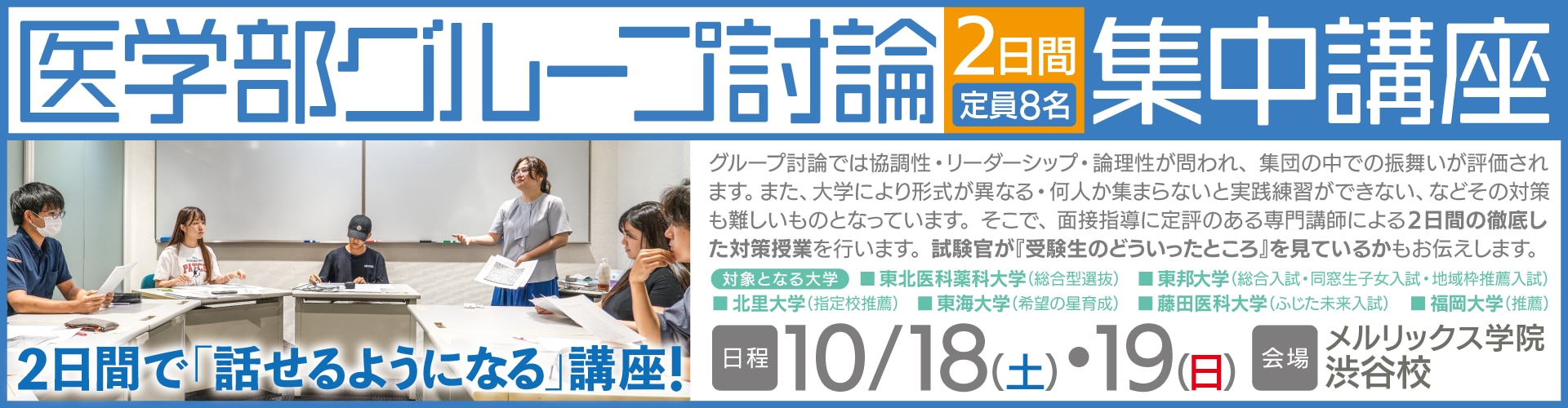 【定員8名】10/18(土)・10/19(土)とメルリックス渋谷校でグループ討論集中講座を行います!