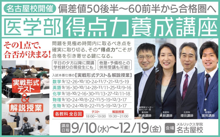 そうした中で、9月から受講した「医学部得点力養成講座」によって、限られた時間の中で素早く解答にたどり着く処理力や、合否を左右する応用問題への対応力・思考力を鍛えることができました。