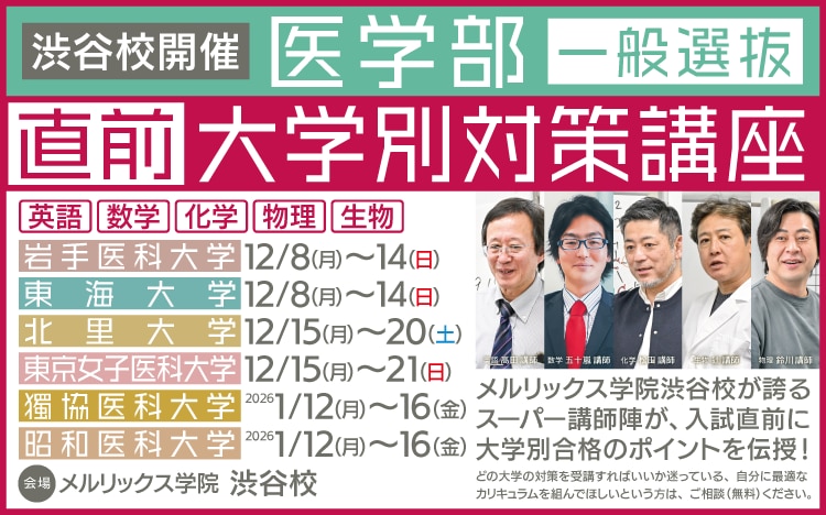 メルリックス学院渋谷校が誇るスーパー講師が、入試直前に大学別合格のポイントを伝授する講座です!