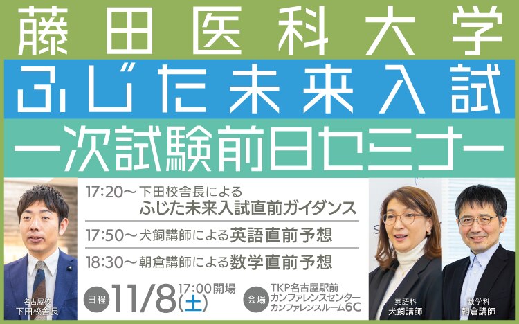 藤田医科大学・ふじた未来入試の一次試験前日セミナーを無料開催!