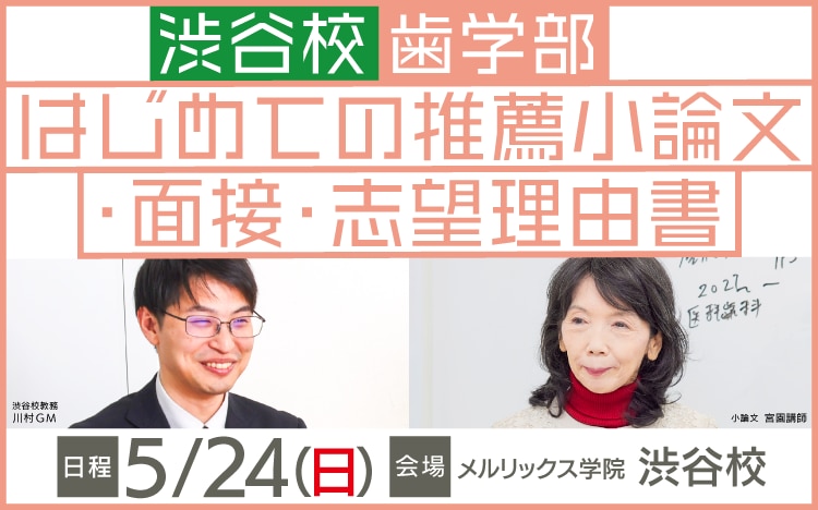 メルリックス学院渋谷校では2027年度以降の学校推薦型選抜・総合型選抜を考えている歯学部受験生のために【はじめての推薦・小論文講座】を行います。