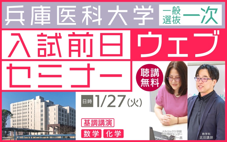 2026年度では数少ない1月入試を行う兵庫医科大学の一次試験前日に、直前ガイダンスとワンポイント予想講座を開催します。